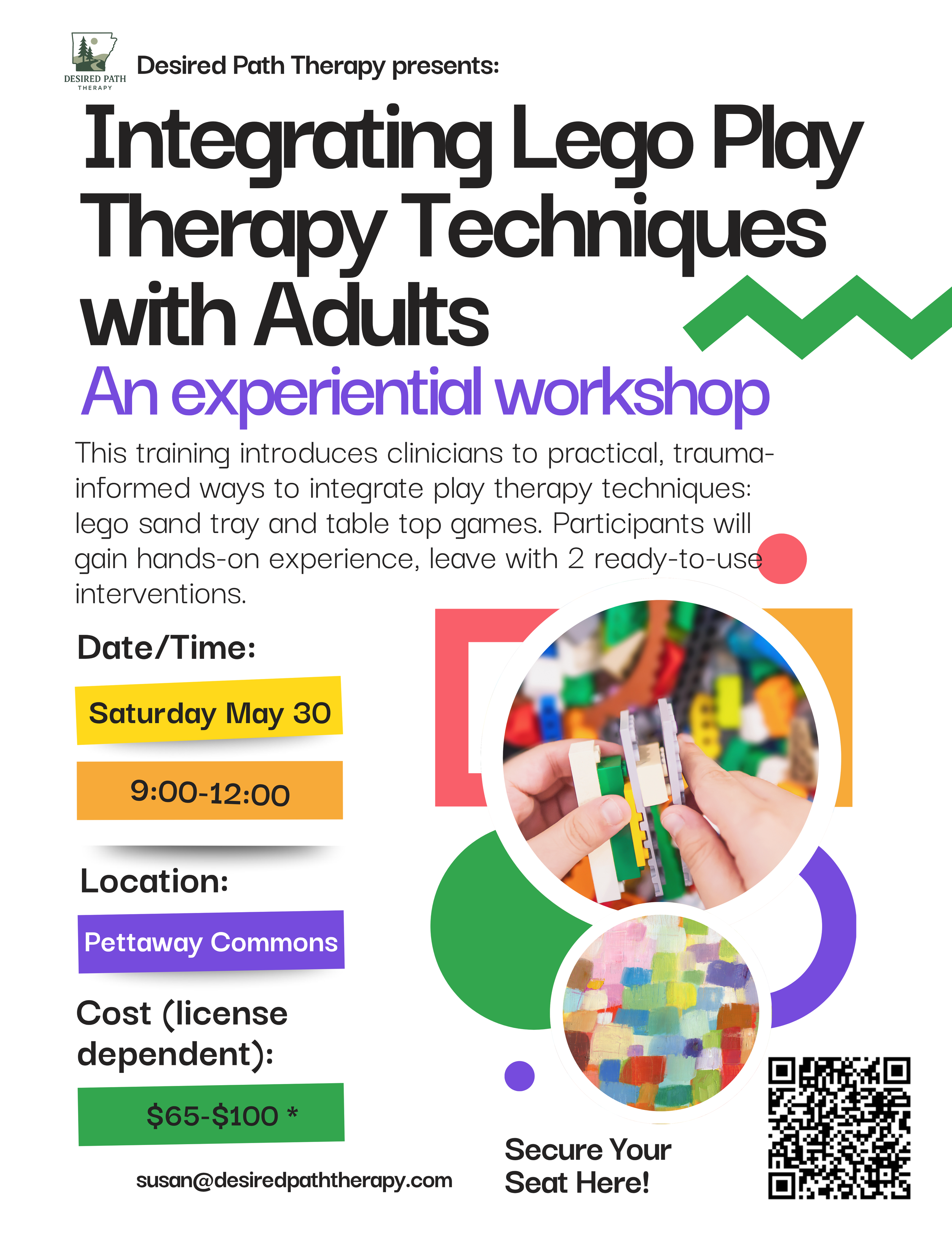 This training introduces clinicians to practical, trauma-informed ways to integrate play therapy techniques—such as lego sand tray and table top games—into work with adult clients. Participants will gain hands-on experience, learn how to introduce these methods to adults, and leave with 2 ready-to-use interventions. Contact Susan through e-mail Susan@desiredpaththerapy.com if there are difficulties checking out or accessing this training.